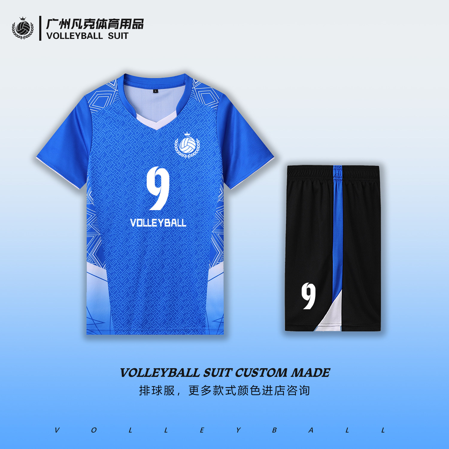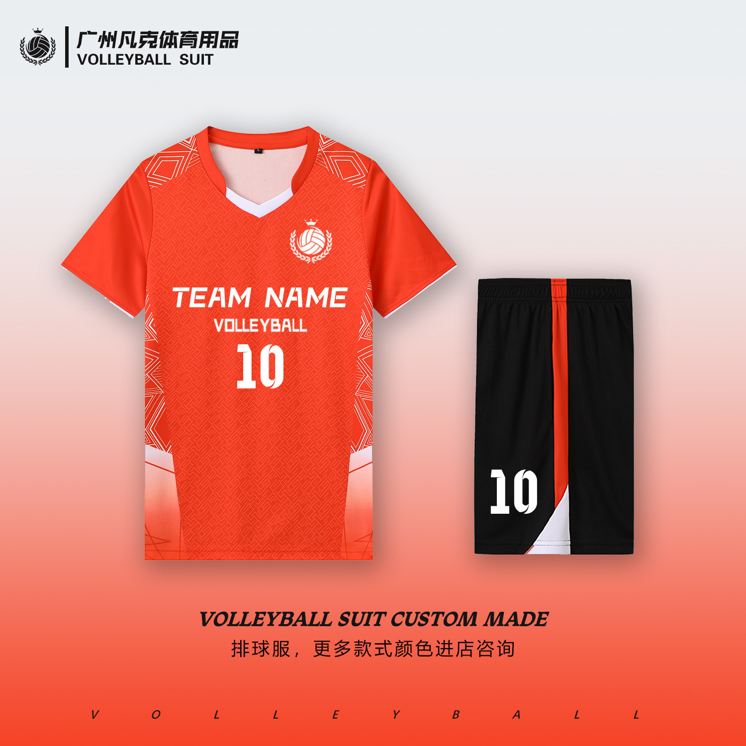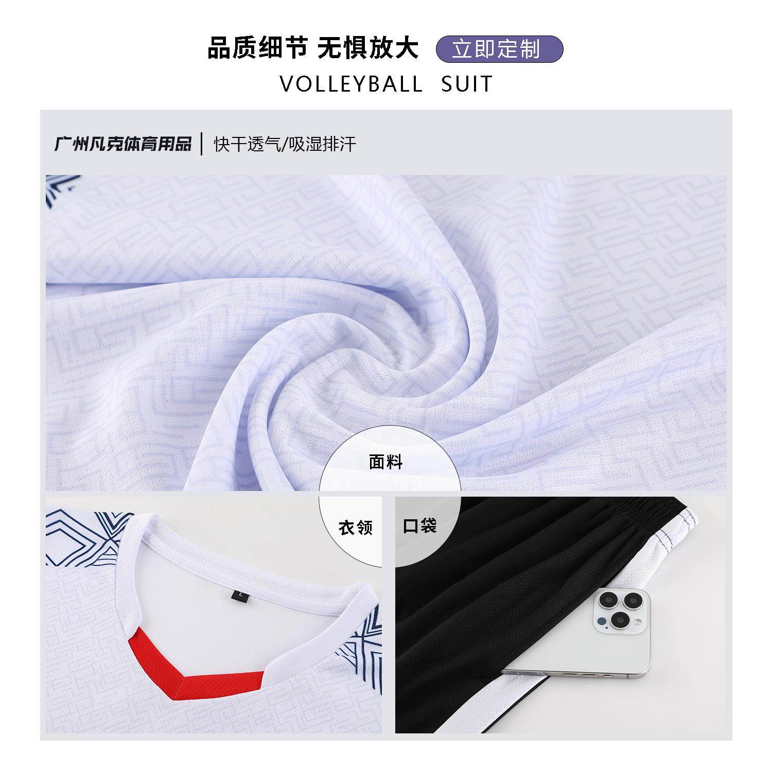 推荐理由:夏季排球比赛服套装速干透气定制队服团队印字号学生运动短袖球衣