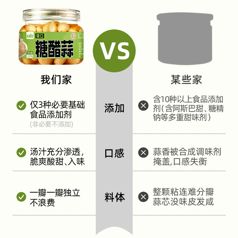 爽口糖醋蒜320g0脂山东大蒜泡蒜酸脆开味配火锅下粥下饭腌蒜即食