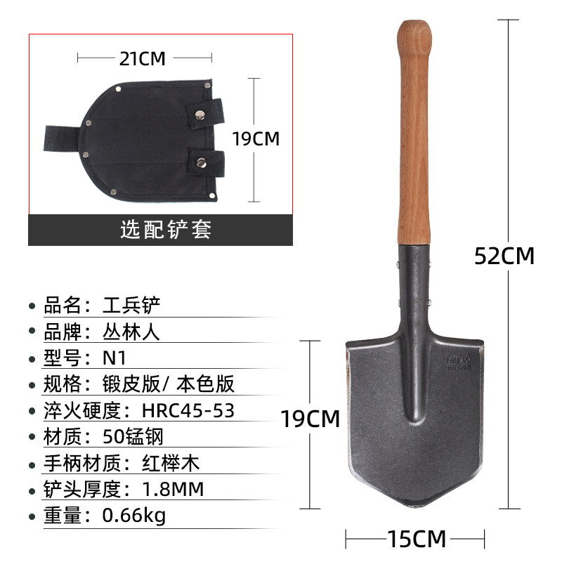 丛林人N1工兵铲户外铁锹铲子锰钢露营车载小军锹德式钓鱼车载钢铲