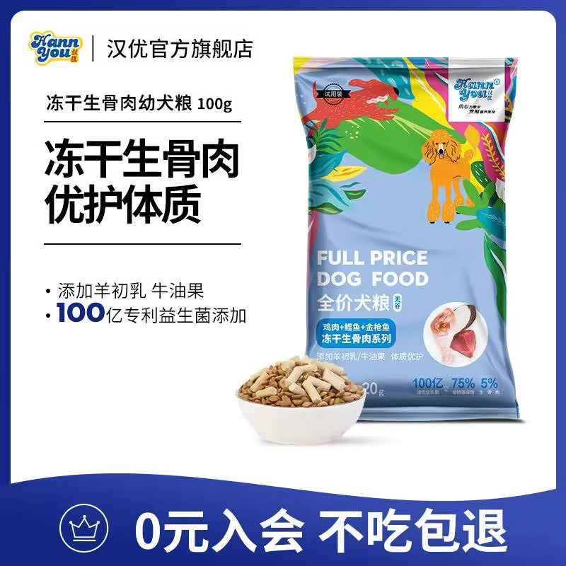 汉优冻干生骨肉狗粮泰迪通用型中大犬小型成犬幼犬粮试吃装100克