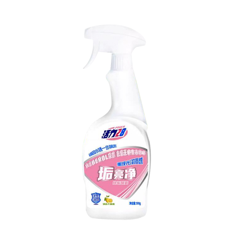 喷雾型设计,快速分解水垢、皂垢、黄斑等顽固污渍,适用于淋浴房玻璃、浴室镜子、水龙头、浴缸等表面。不含磷、荧光剂等有害成分,气味温和不刺鼻,对皮肤无刺激。