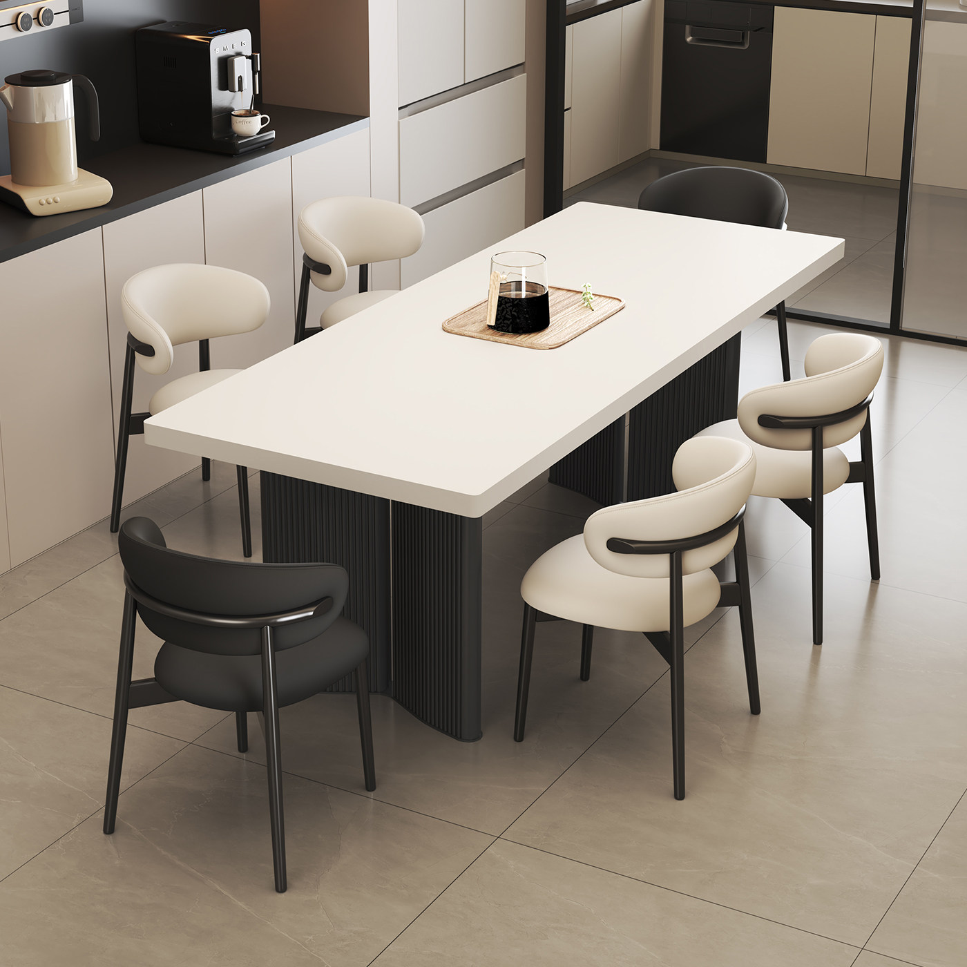 国补意式极简小户型长方形家用客厅现代简约岩板餐桌轻奢餐椅组合