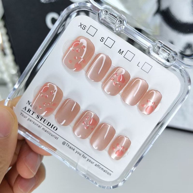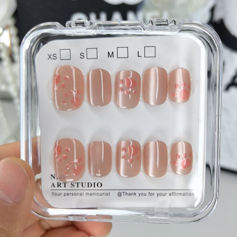 高级感穿戴甲短款学生党粉红猫脚手工甲猫眼显白美甲贴片2025新款