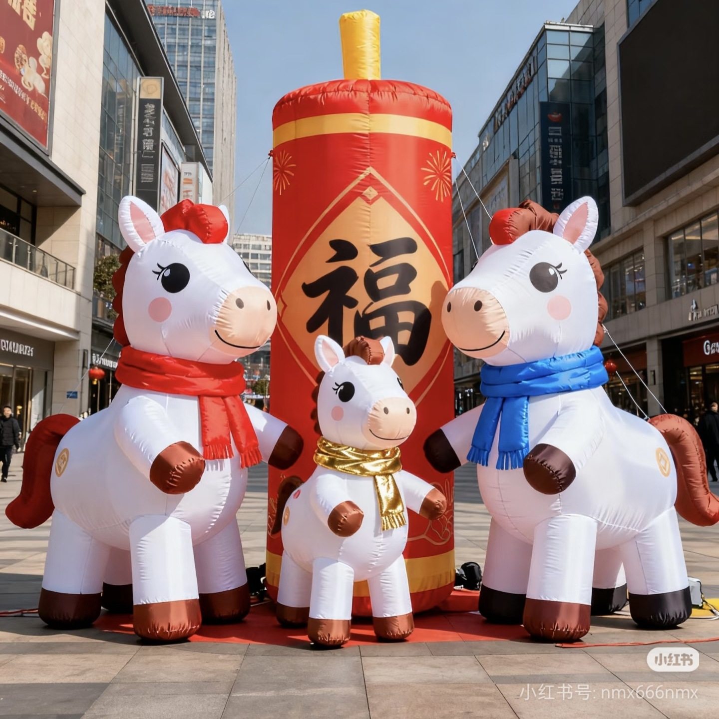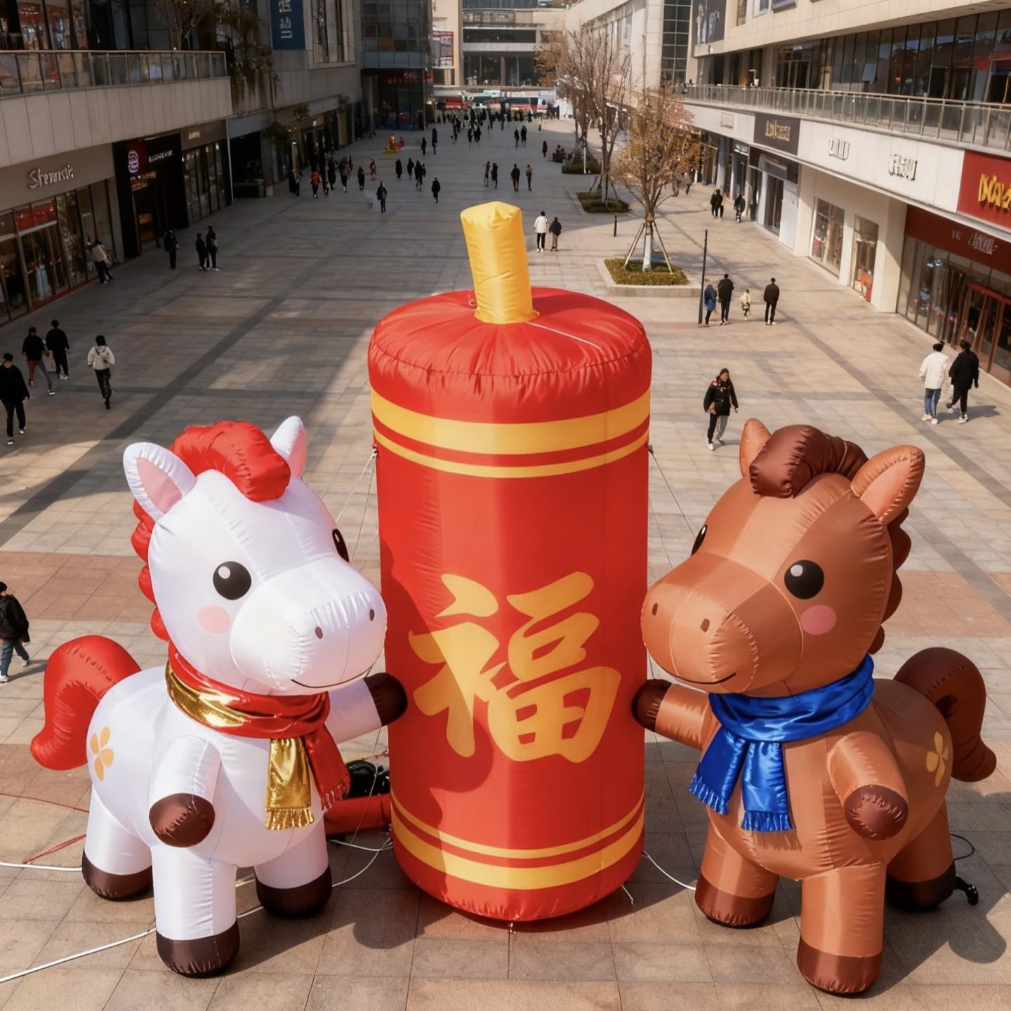 推荐理由:马年新年吉祥物装饰福字小马气模商场户外街区景观美陈装置猫