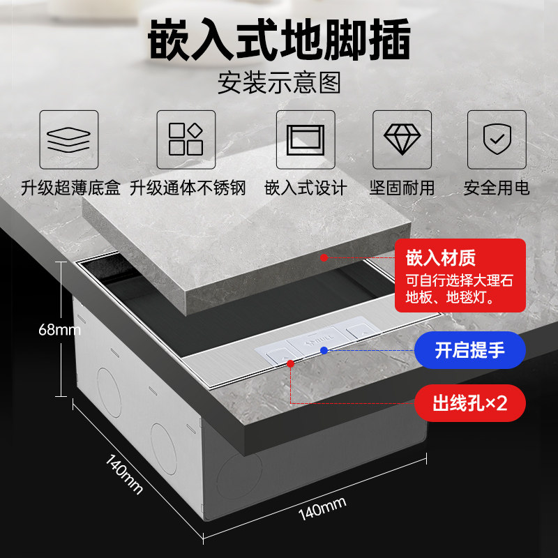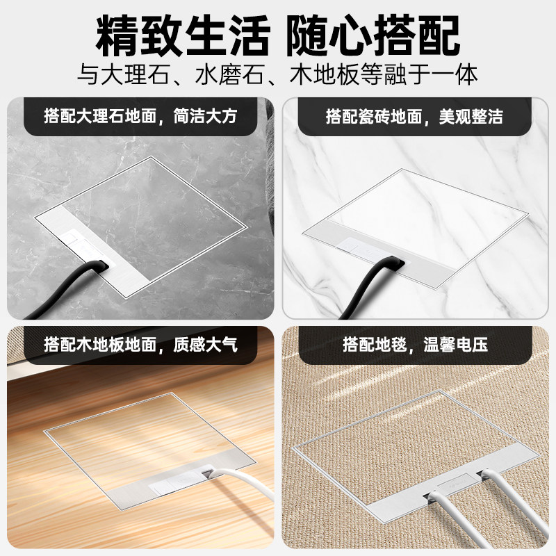 公牛地插座隐形嵌入式地板隐藏超薄防水纯平不锈钢型网线地面插座