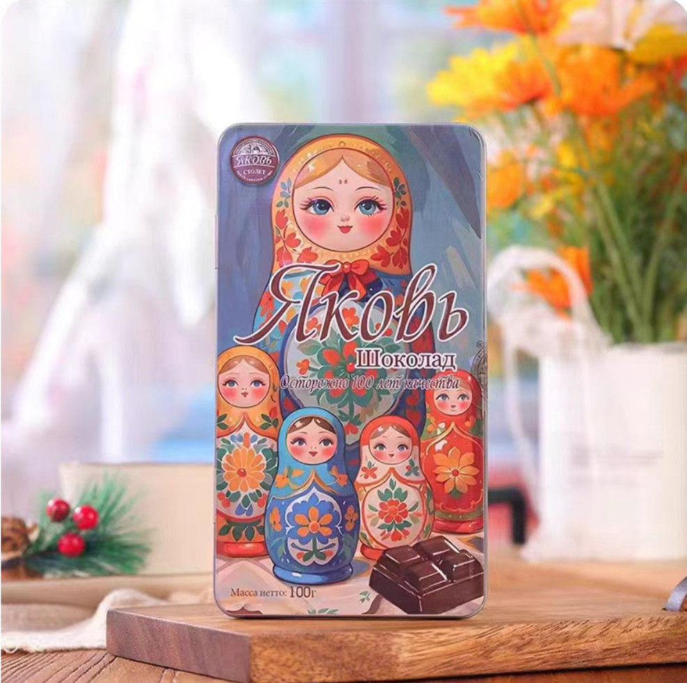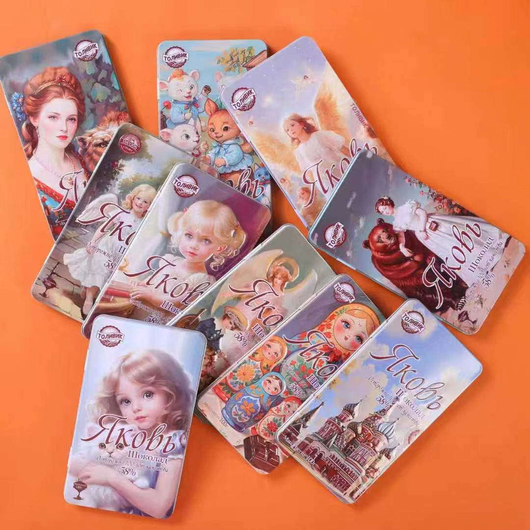 推荐理由:俄罗斯风情斯巴系巴牌铁盒牛奶巧克力纯可可脂天使套娃城堡100克