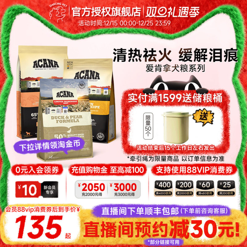 ACANA爱肯拿鸭肉梨狗粮低敏大中小型成犬幼犬全阶段犬粮部分临期