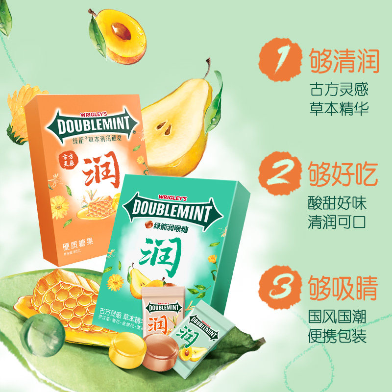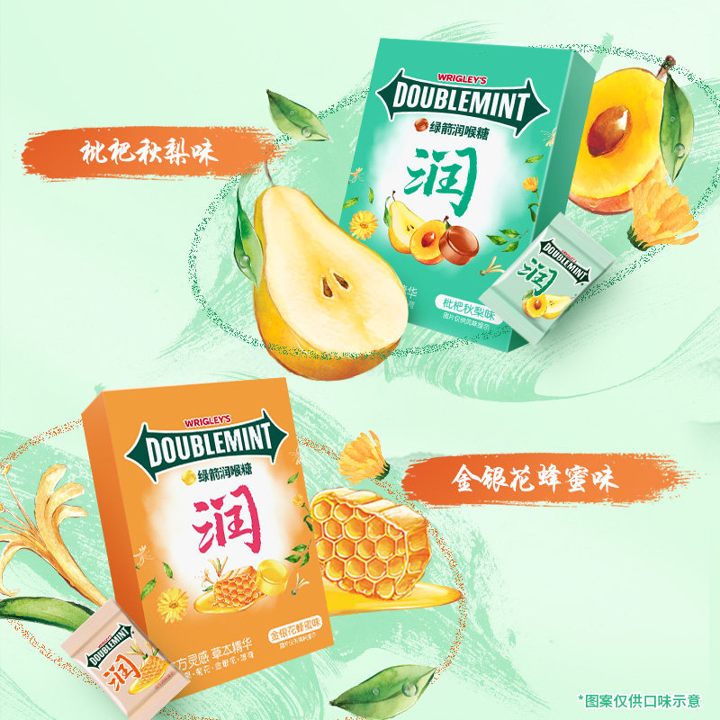 绿箭润喉糖果金银花蜂蜜枇杷秋梨20.5g*4盒古方草本清润护嗓零食