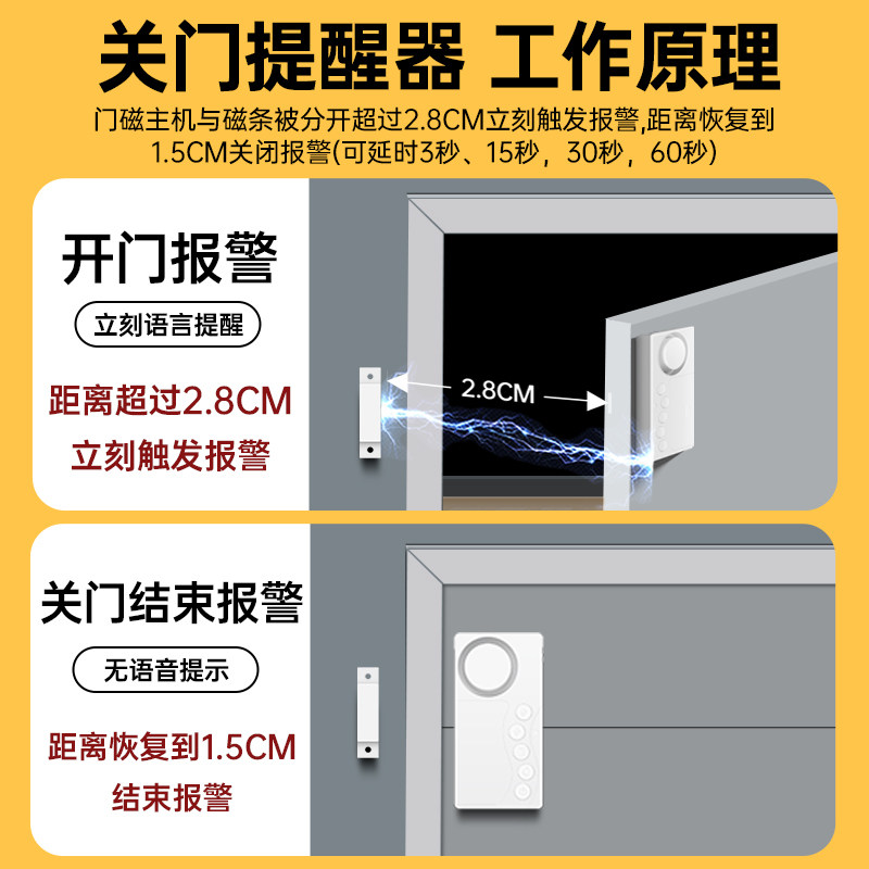 未关门提醒器门没关开门延时报警器防忘记冰箱冰柜门窗提示警报器