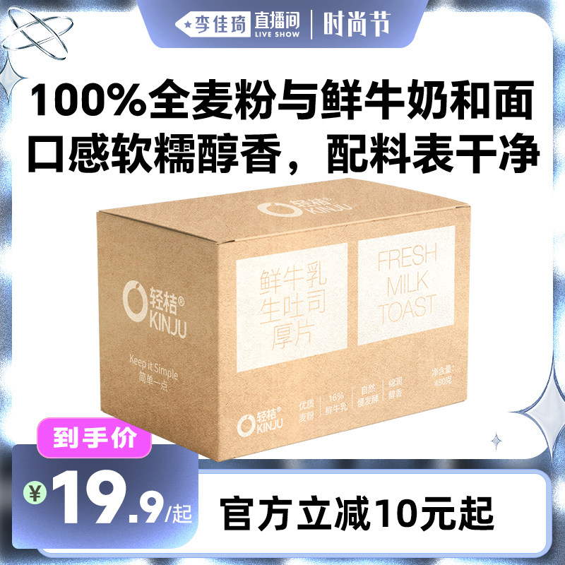 【李佳琦直播间时尚节】轻桔鲜牛奶黄油手工生吐司厚切全麦面包