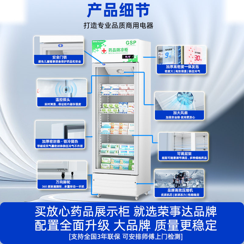 推荐理由:荣事达药品阴凉柜GSP认证医用药房店冰箱保鲜冷藏柜商用展示柜