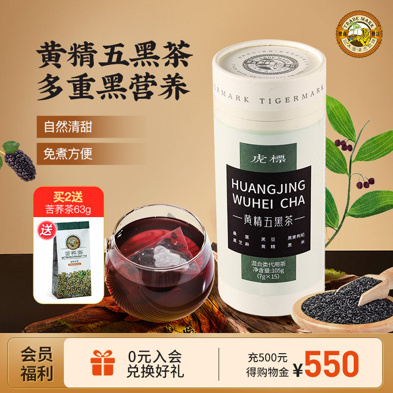 香港虎标黄精五黑茶桑葚黑豆黑枸杞黑芝麻黑米袋泡茶105g
