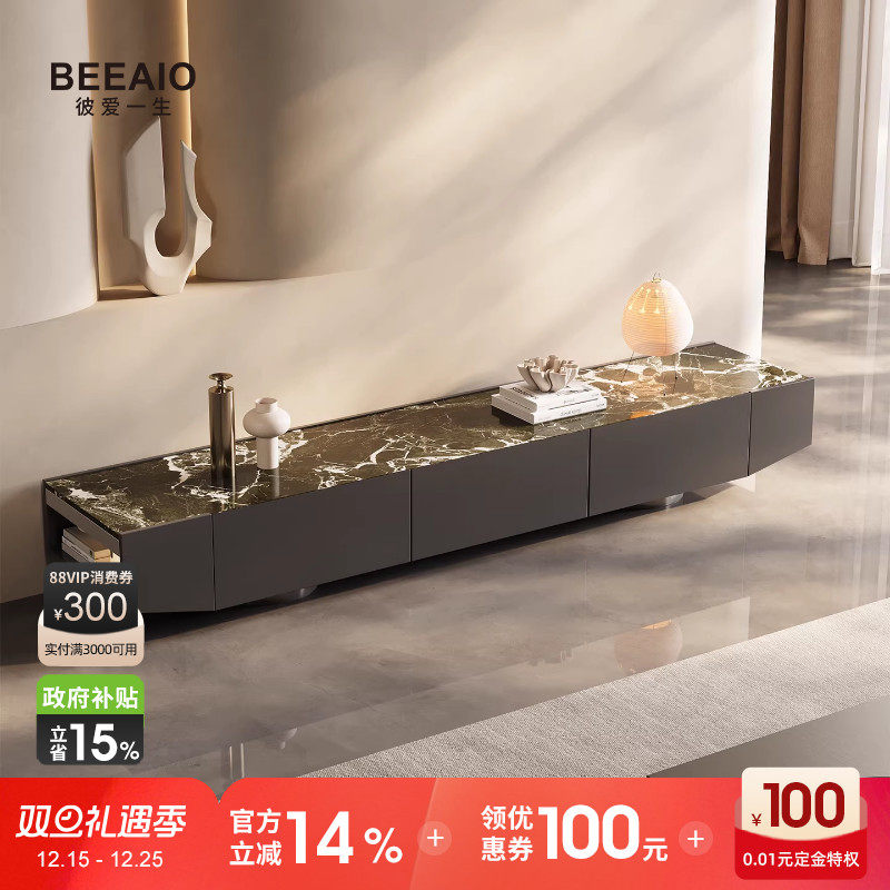 彼爱1生天然奢石电视柜意式极简客厅家用高级感落地小户型地柜