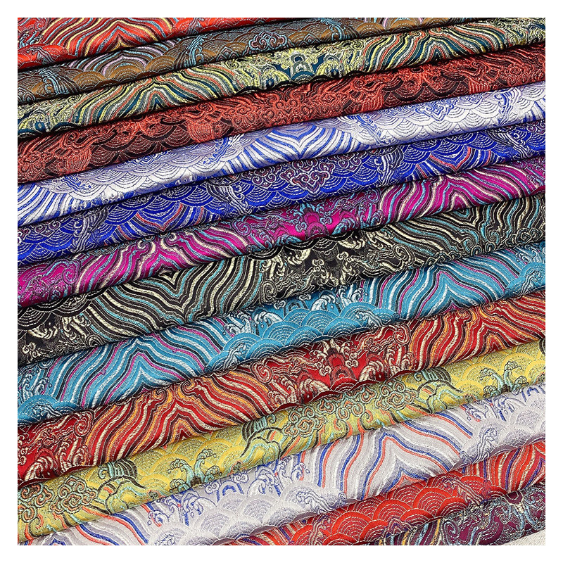 织锦缎面料丝绸厂家供应仿三五海浪花色织提花布料家具家纺坐垫等