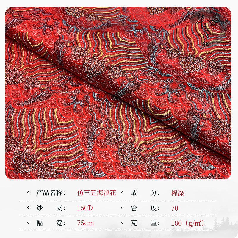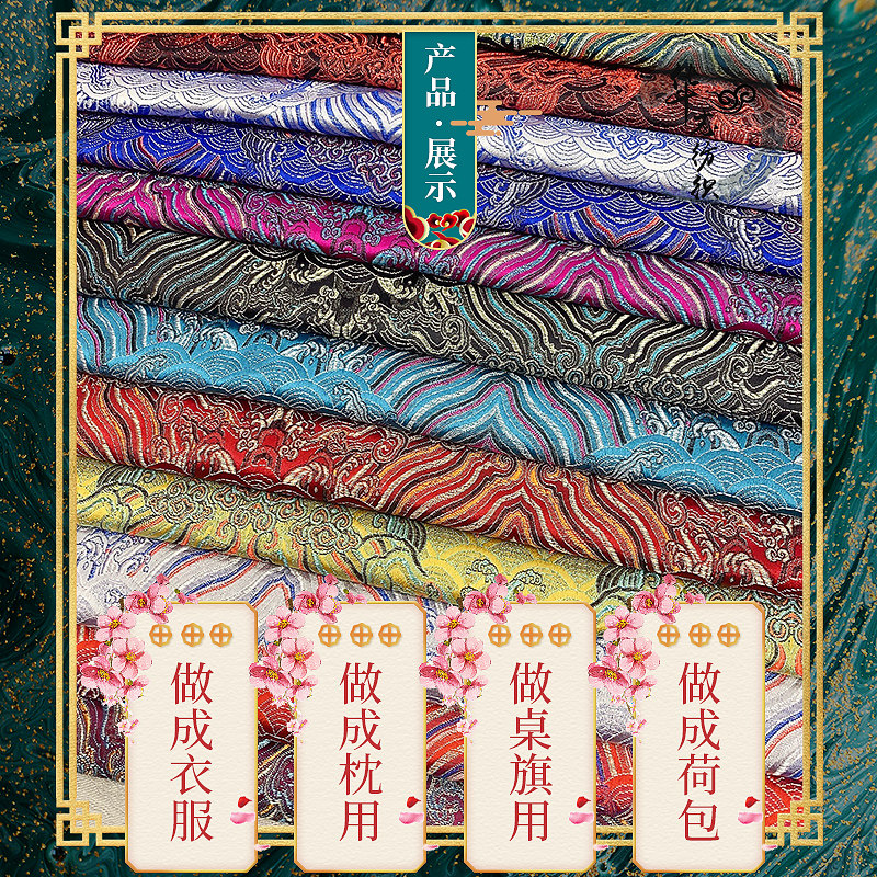 推荐理由:织锦缎面料丝绸厂家供应仿三五海浪花色织提花布料家具家纺坐垫等