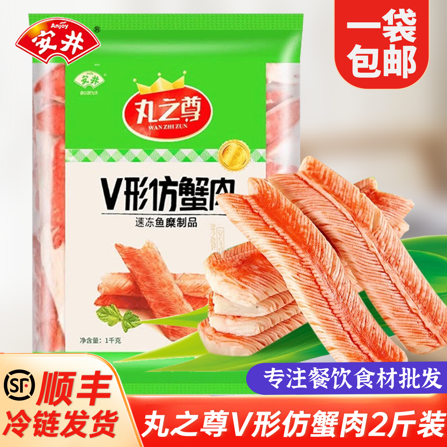 安井丸之尊V形仿蟹肉1kg蟹味棒寿司手撕蟹柳麻辣烫关东煮火锅食材