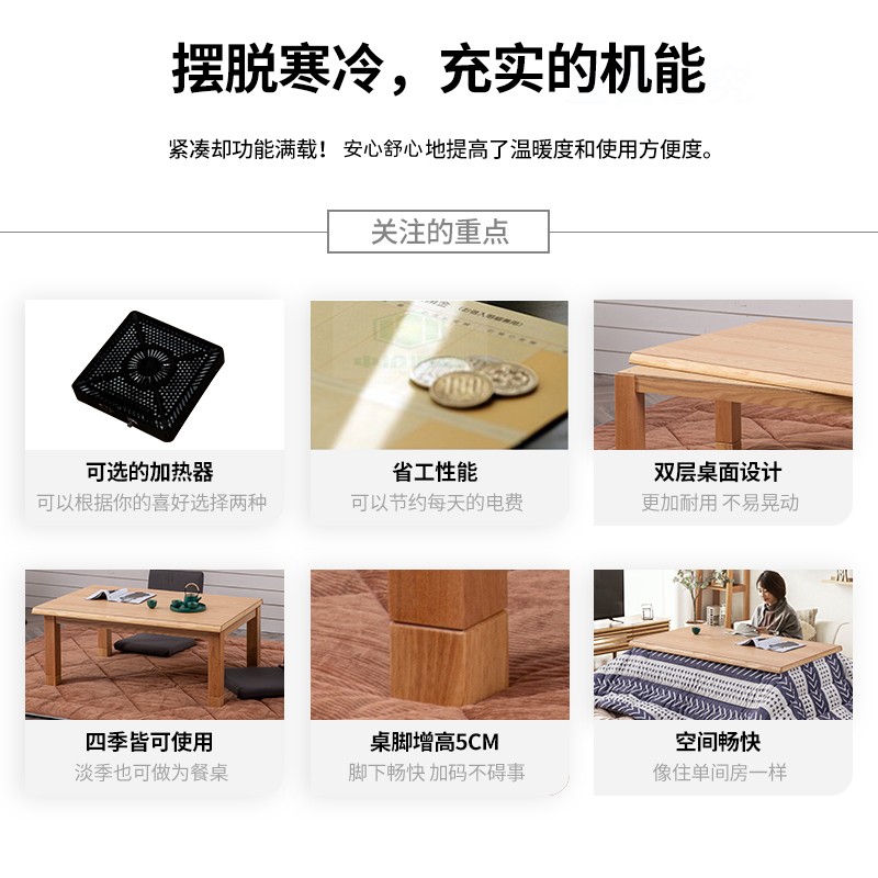 推荐理由:日式暖桌被炉桌电暖桌こたつ榻榻米茶几矮几和室茶几冬加粗实木桌