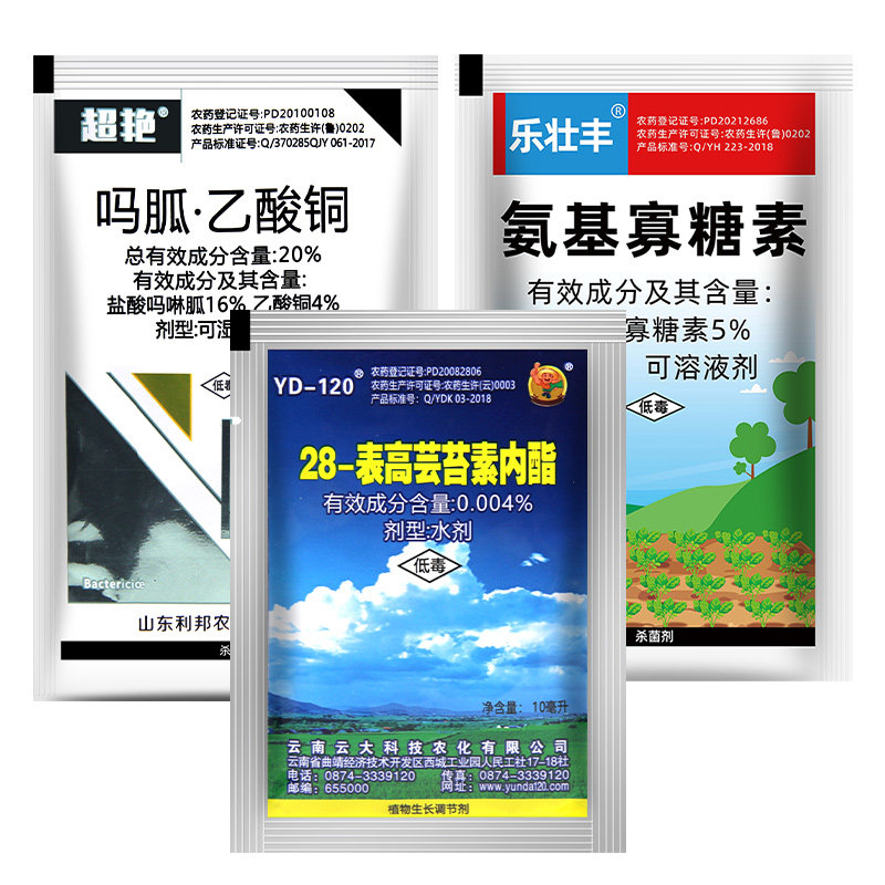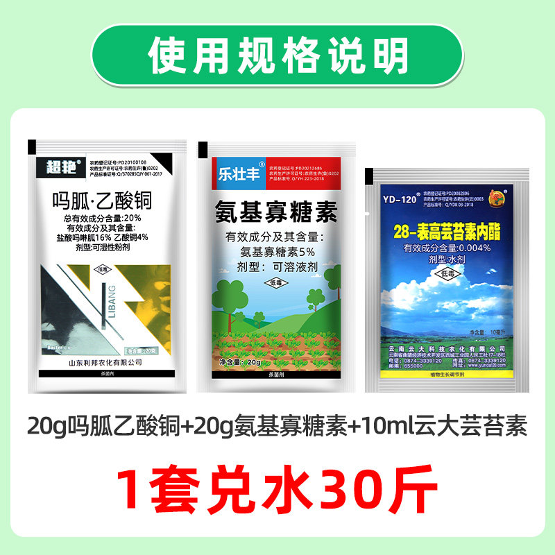 病毒病专用氨基寡糖素吗胍乙酸铜芸苔素番茄辣椒植物杀菌剂组合