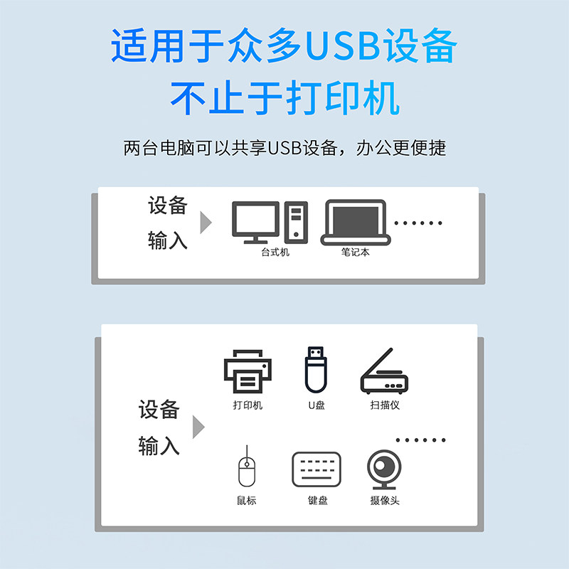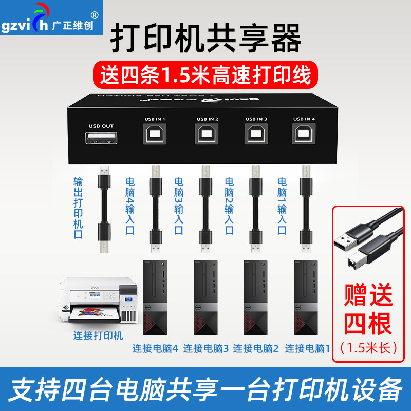 打印机共享器分线器一拖三一拖二usb转换器三台共用一拖四两台电脑共用数据线连接线一分二转接头4口切换器