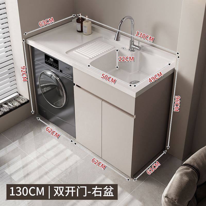 奶油风洗衣机阳台一体柜组合洗衣柜洗衣池台盆伴侣带搓板脸盆