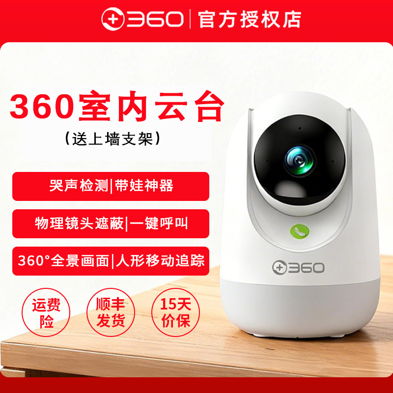 360摄像头360°全景云台智能监控养娃+2K超清+双频wifi+哭声检测