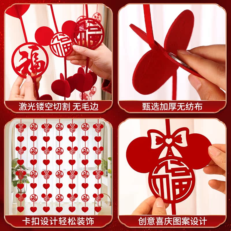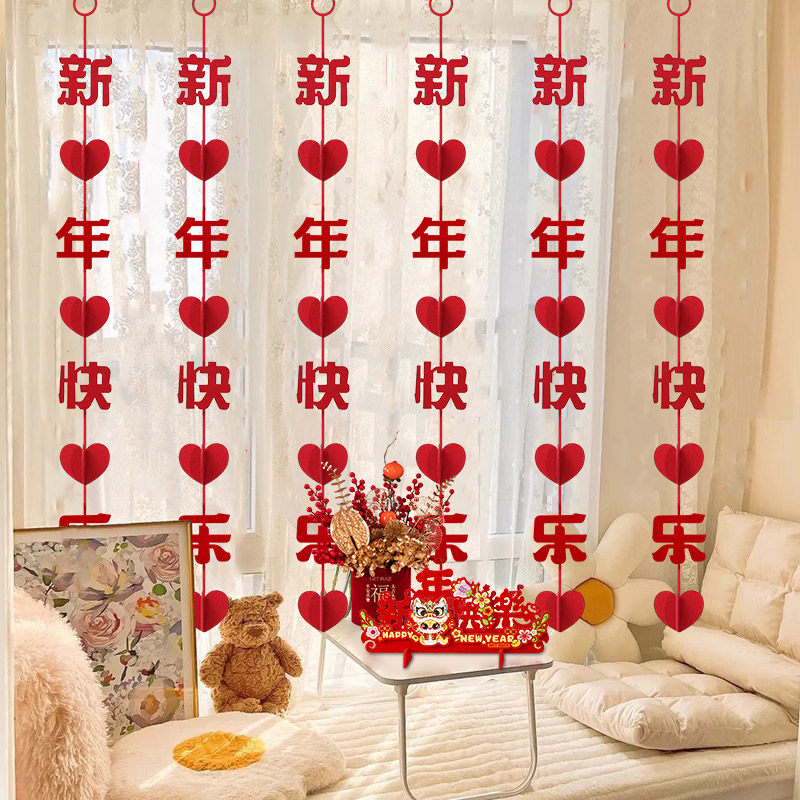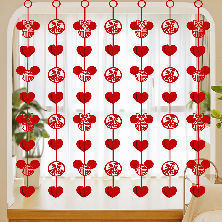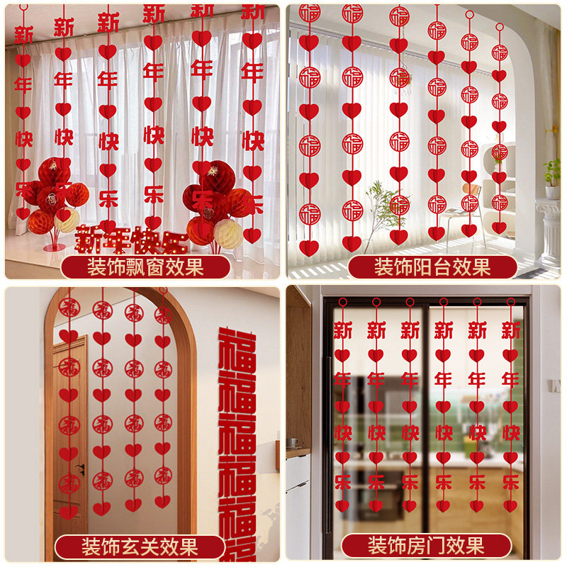 2026新年装饰窗帘福字挂饰春年卧室布置马年客厅拉花门帘阳台挂件
