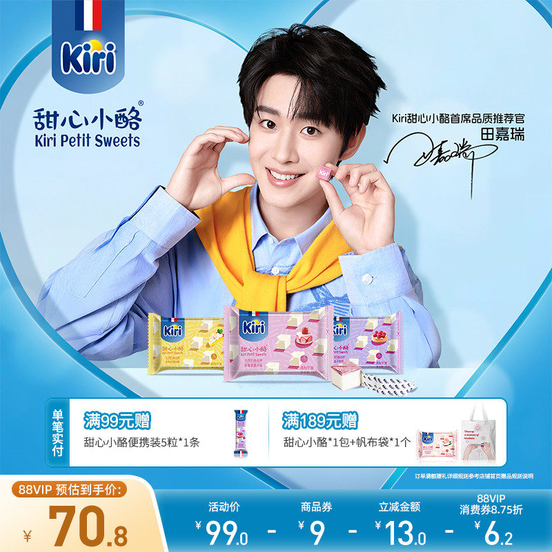 Kiri凯芮甜心小酪即食奶酪芝士进口小方奶酪营养零食干酪15粒*3包