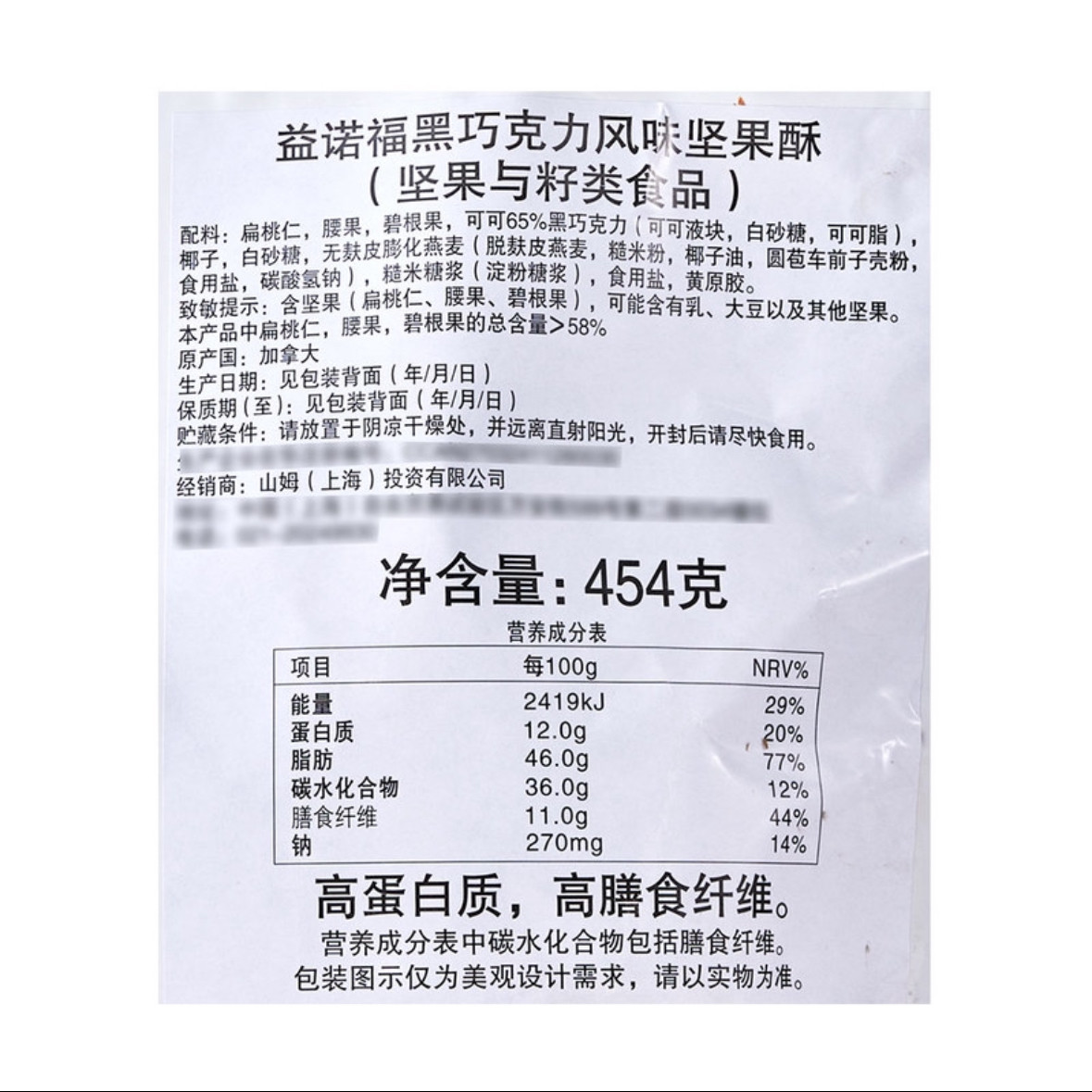推荐理由:山姆会员店代购果仁制品零食加拿大进口益诺福黑巧克力风味坚果酥