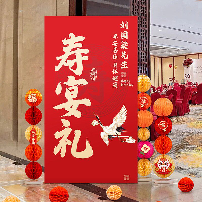 老人大寿宴高级场景生日布置装饰迎宾牌过祝寿六十岁80背景墙kt板