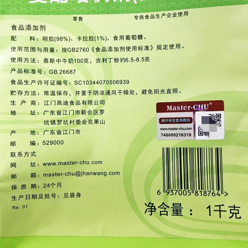 朱师傅吉利丁粉片1kg 鱼胶粉 明胶粉 食用果冻布丁慕斯蛋糕原料