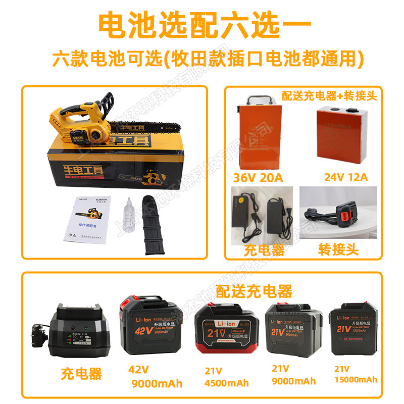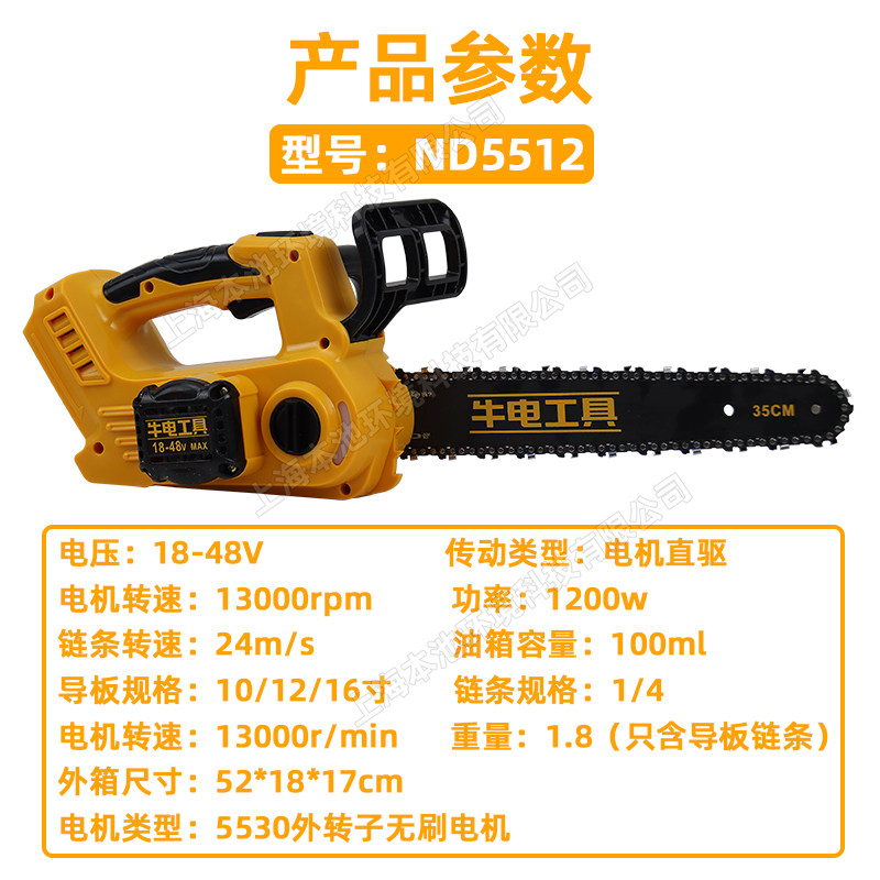 推荐理由:牛电锂电锯单手伐木锯10/12/16寸家用伐木电链锯砍树切割锯单手锯