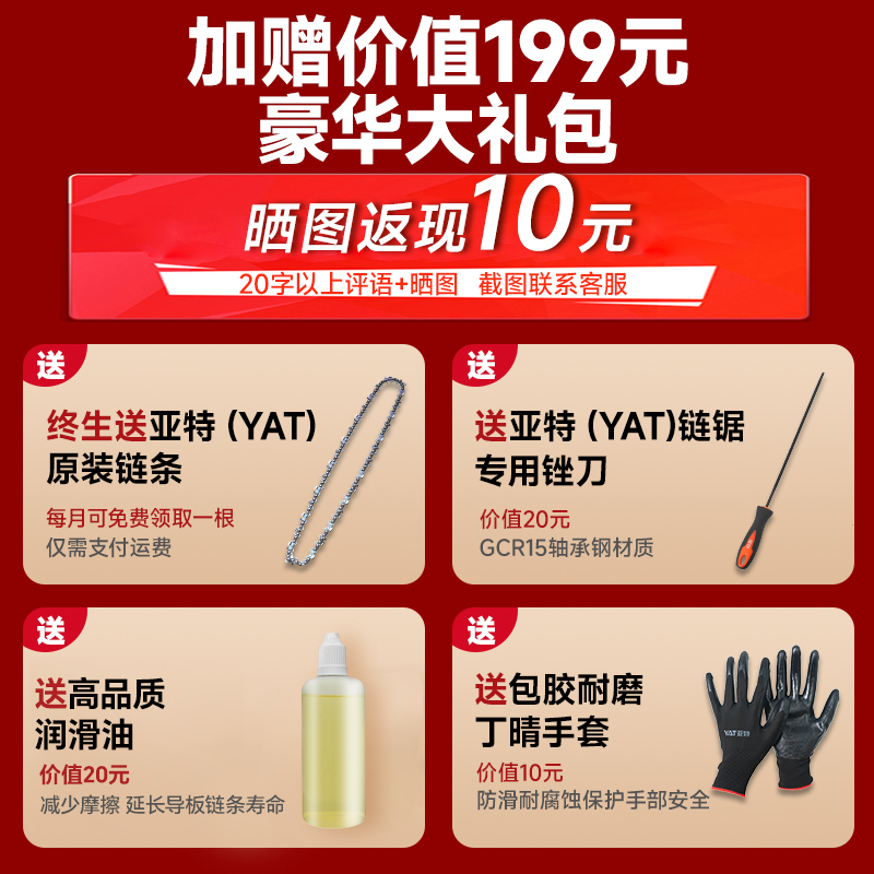 亚特电锯家用锯树220v插电小型手持电链锯伐木锯大功率电动链条锯