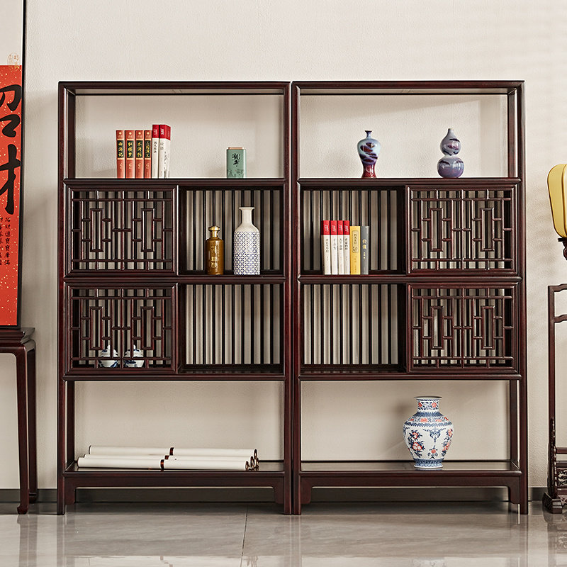 贡艺名居博古架实木新中式书架展示柜赞比亚血檀茶叶置物架茶室
