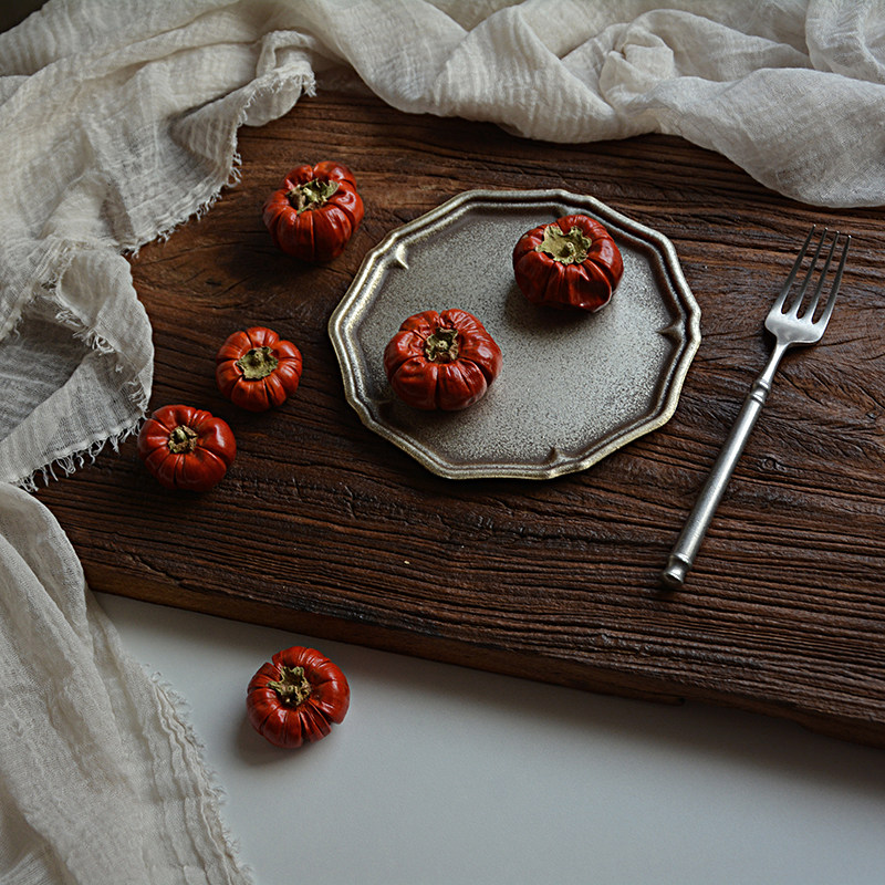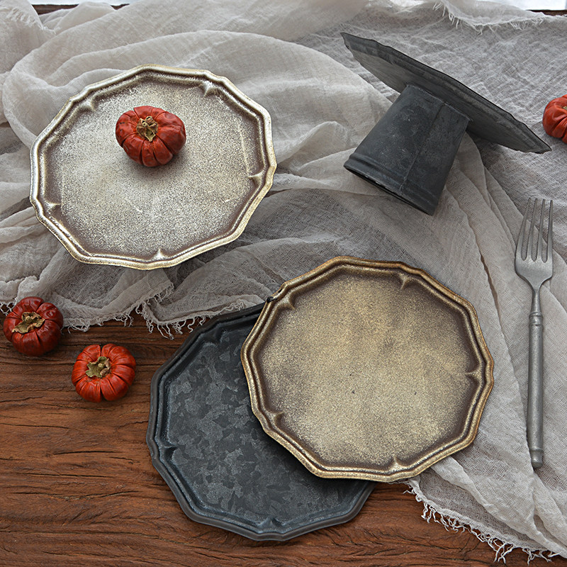 复古花边做旧铁艺托盘高脚面包水果盘收纳盘静物美食拍摄甜品台