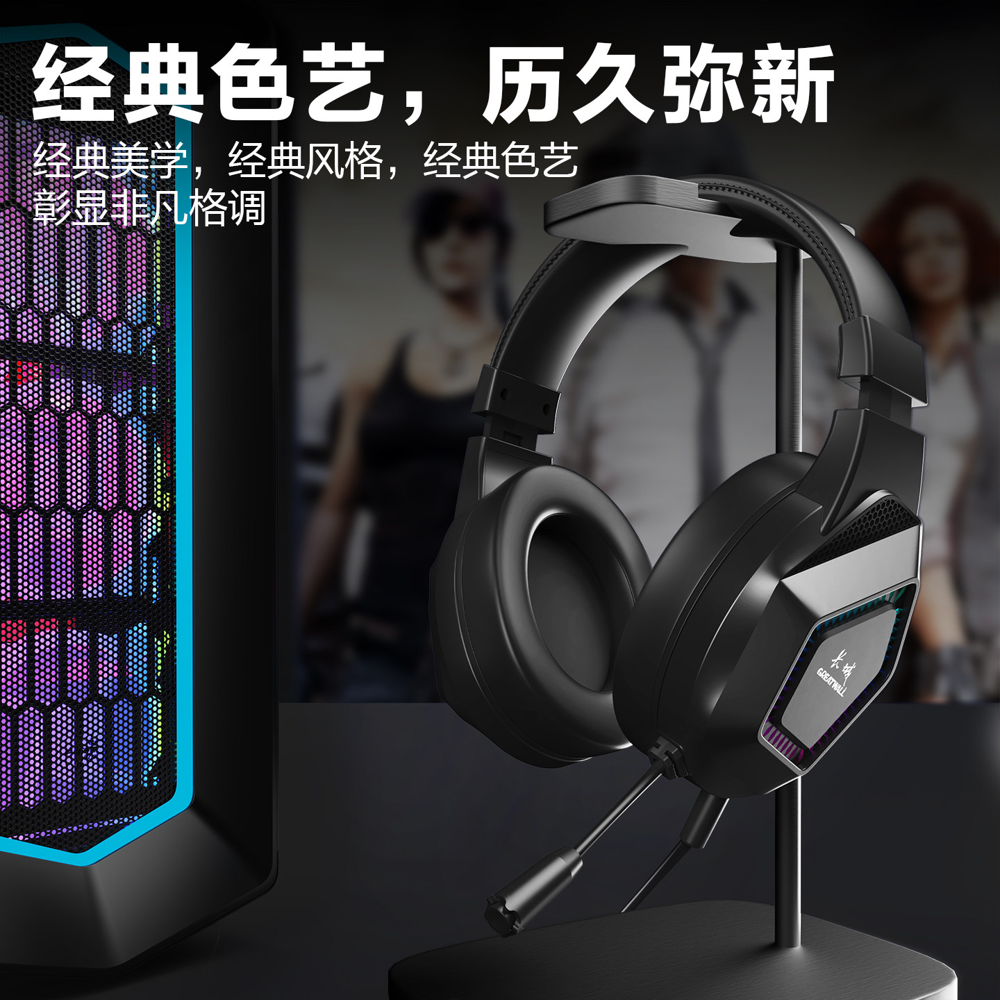 正品长城有线电脑耳机头戴式发光电竞游戏专用台式机通用USB耳麦