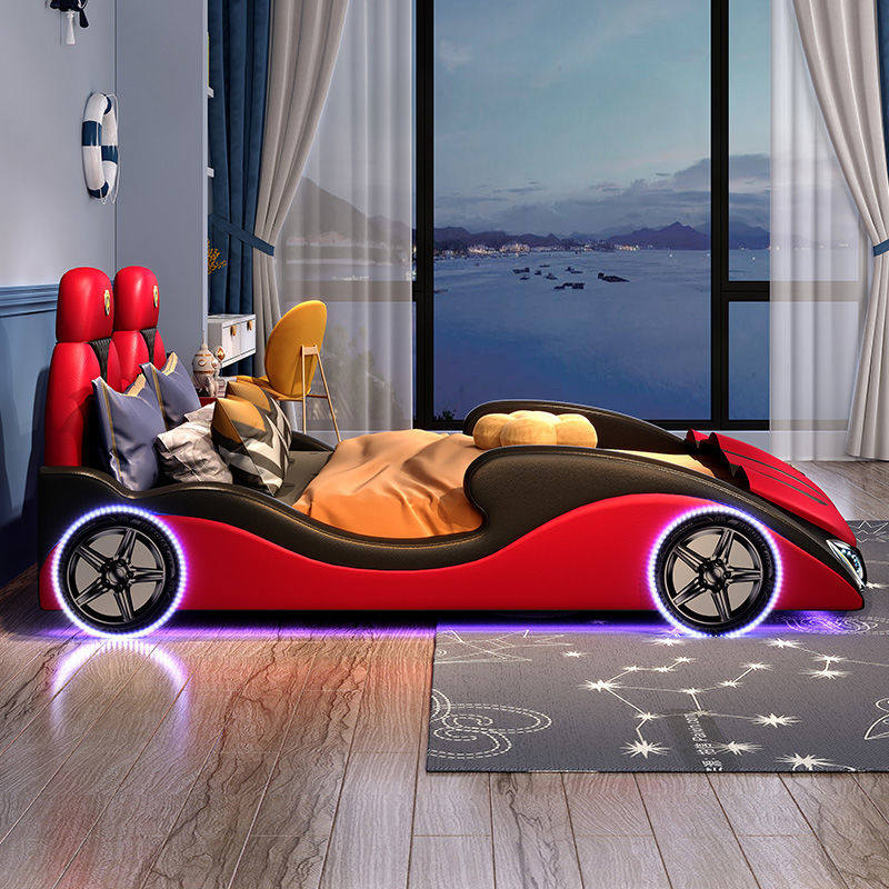 儿童床男孩实木汽车床带护栏1.5儿童床1.2到16岁创意双人房间皮床