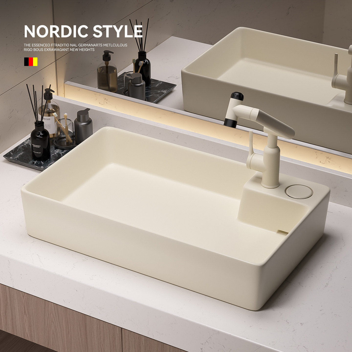 推荐理由:奶油风台上盆藏式侧排后排下水阳台洗手盆洗衣盆洗脸盆陶瓷家用