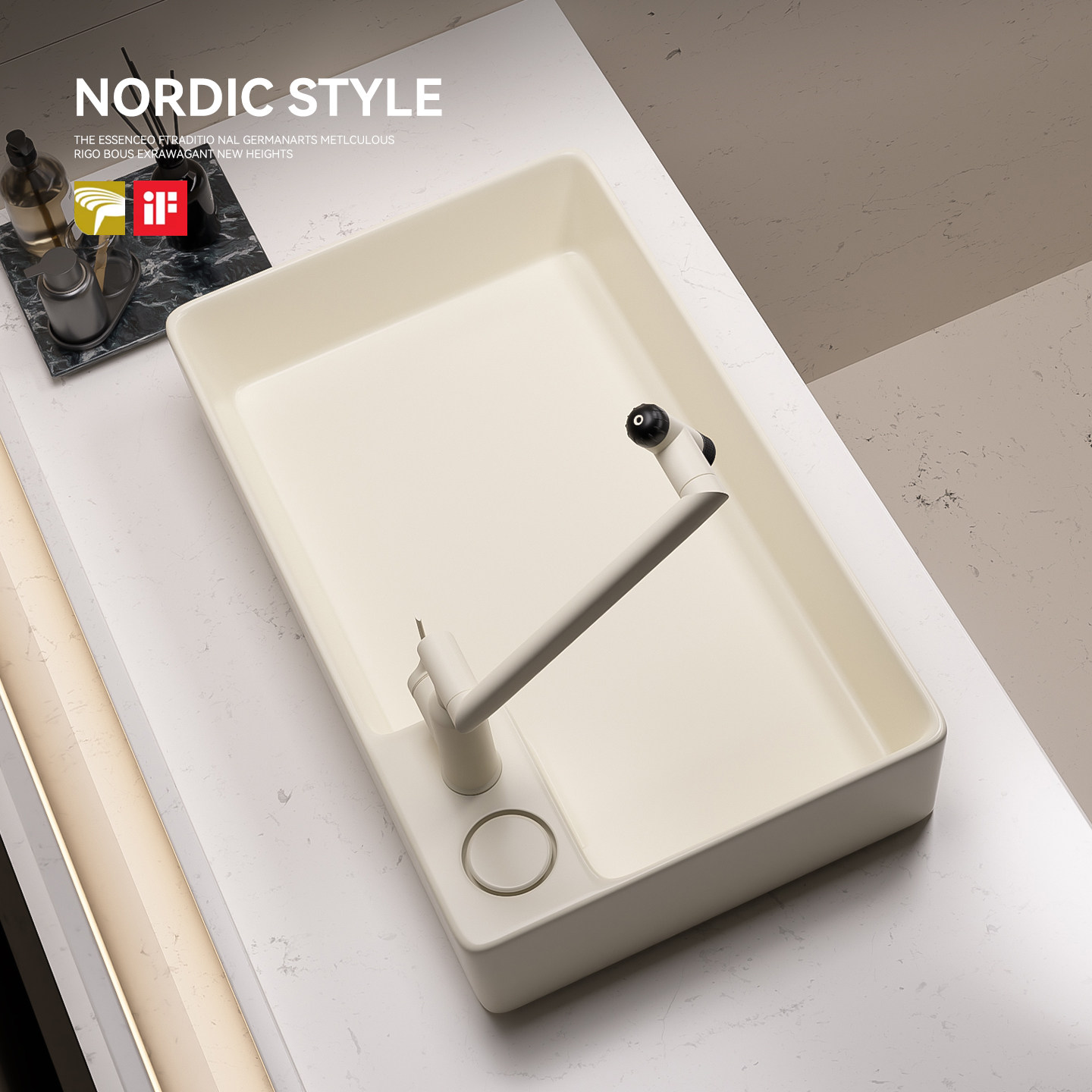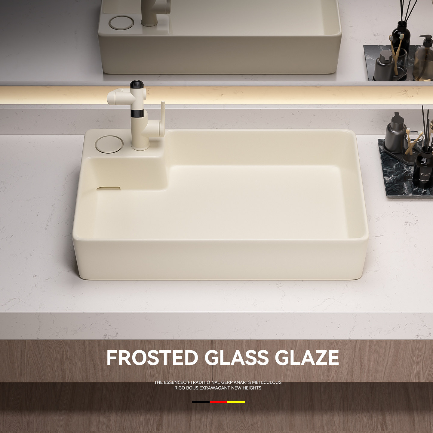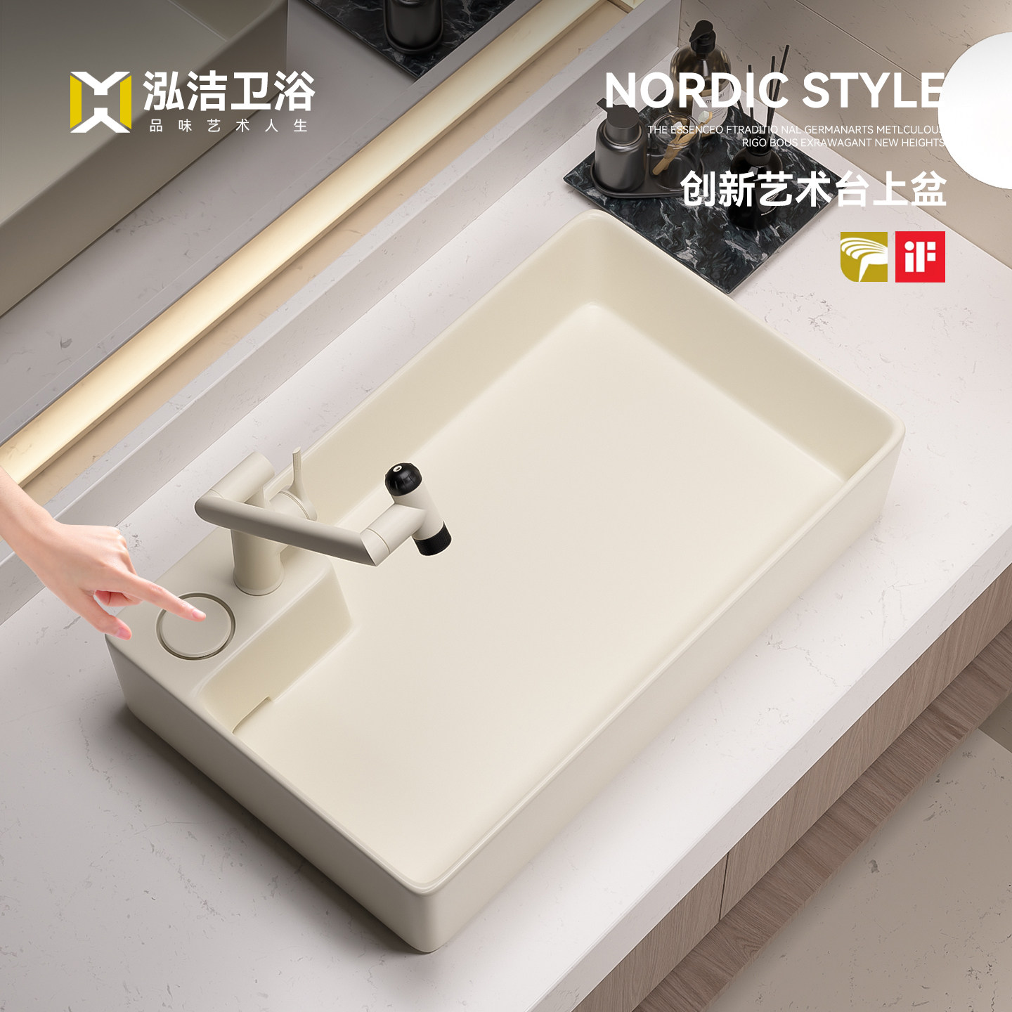 奶油风台上盆藏式侧排后排下水阳台洗手盆洗衣盆洗脸盆陶瓷家用