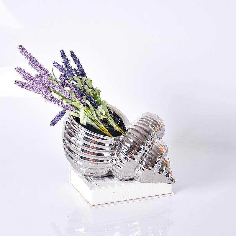 现代创意海螺造型陶瓷花瓶摆件餐桌电视柜样板间玄关茶几干花插