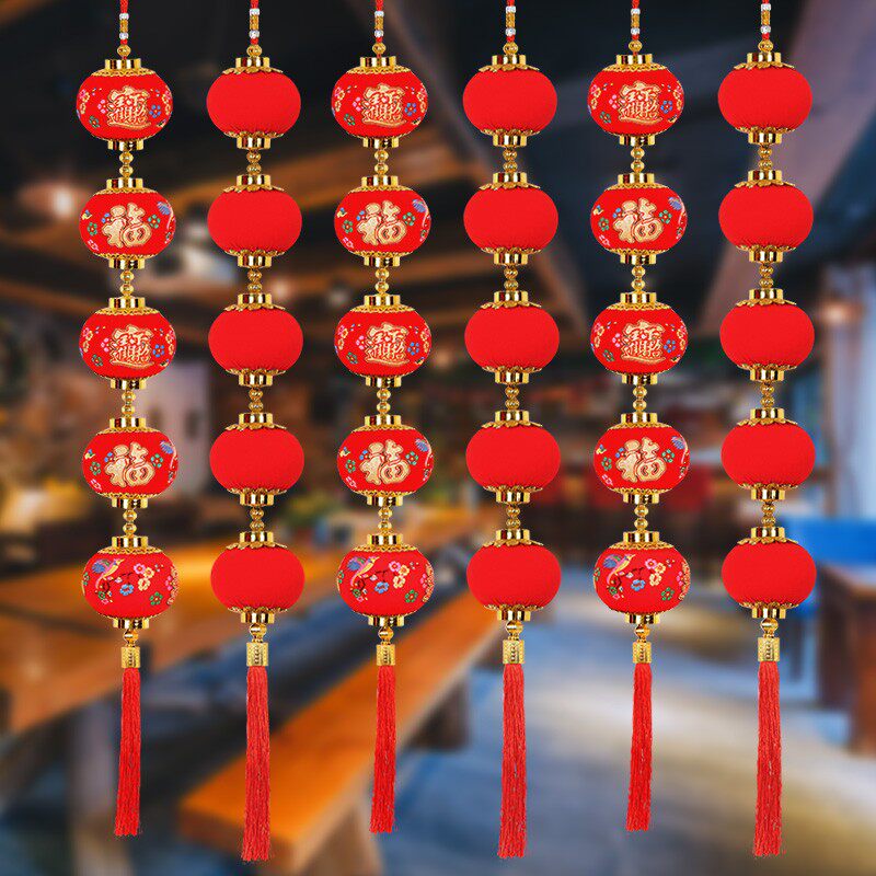 元旦新年五福连串灯笼春节结婚小红灯笼节日室内场景布置装饰用品