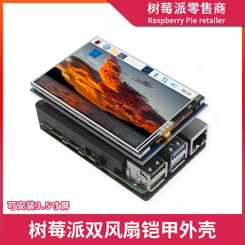 树莓派4代B型3.5寸触摸显示屏 3B+/4B铝合金双风扇散热屏幕套件