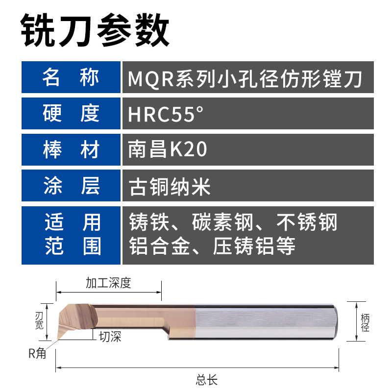 推荐理由:MQR小孔径镗刀数控内孔槽刀车刀钨钢合金抗震镗孔刀微型小径镗刀