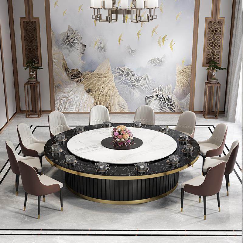 推荐理由:火锅桌子电磁炉一体商用酒店一人一锅餐桌新中式桌椅组合大圆桌