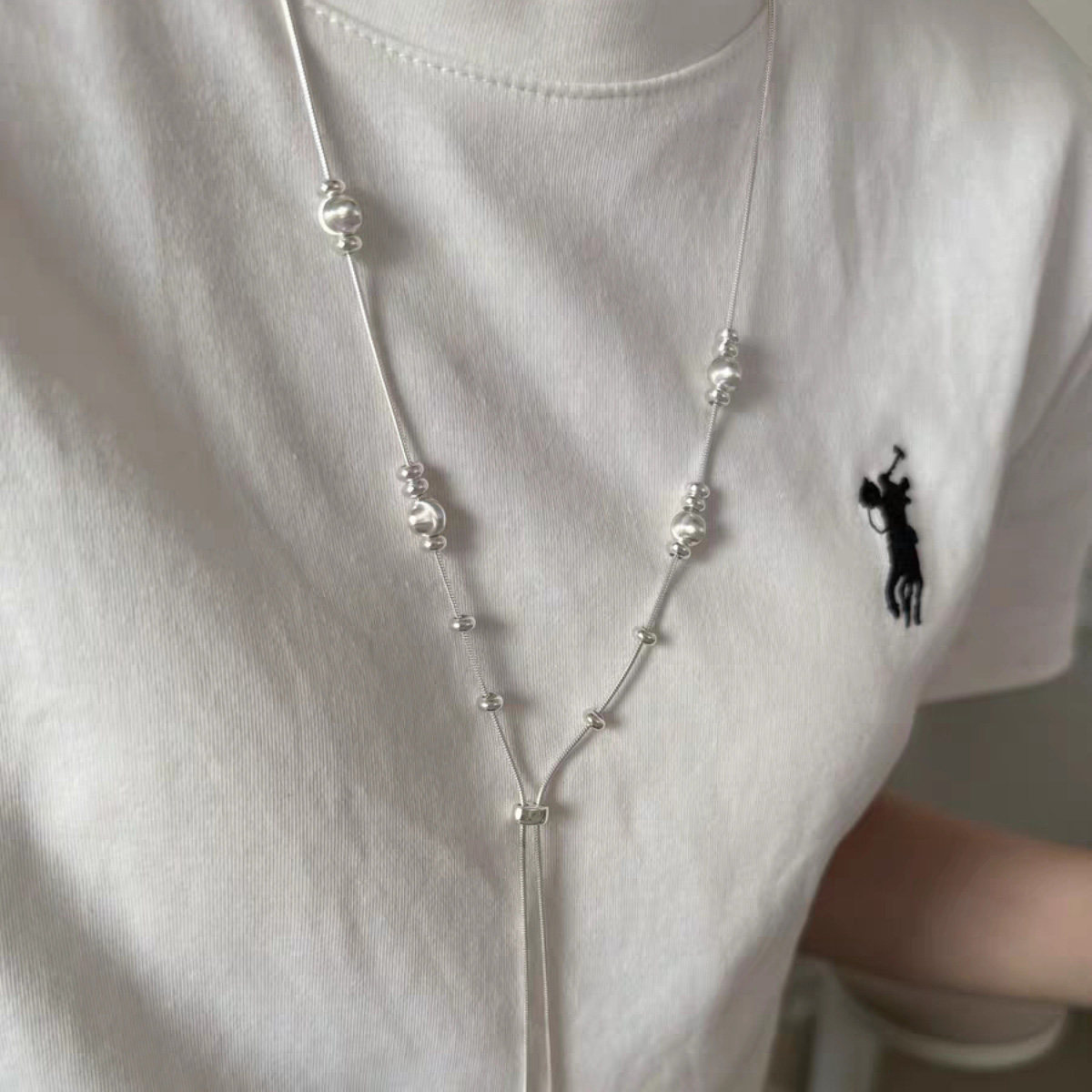 推荐理由:日韩新款猫眼珠珠项链蛇骨链可抽拉调节轻奢高级感小众长款毛衣链