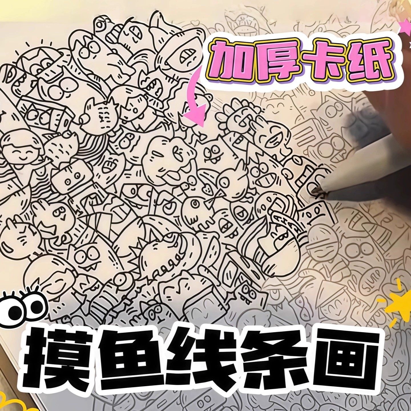 推荐理由:上班摸鱼线条画临摹纸线稿练习图描图专用学生简笔画控笔练习图纸