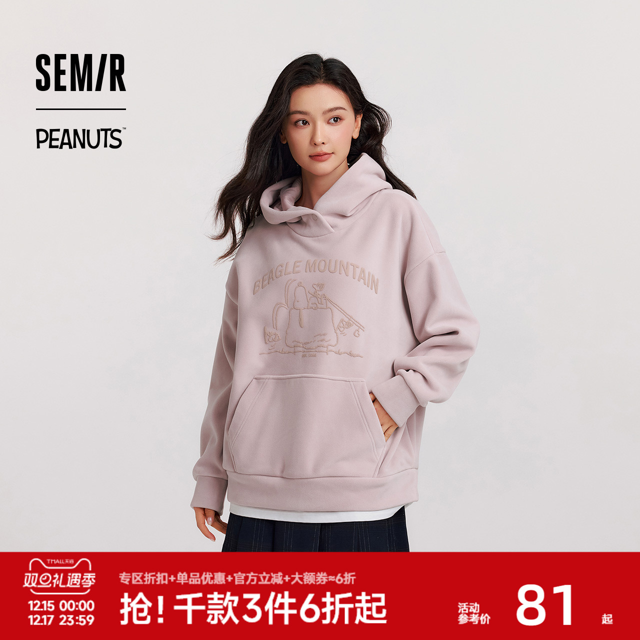 森马史努比系列卫衣女中长款假两件女装冬季外套摇粒绒连帽上衣