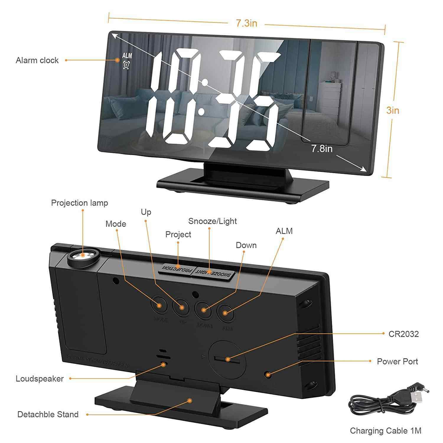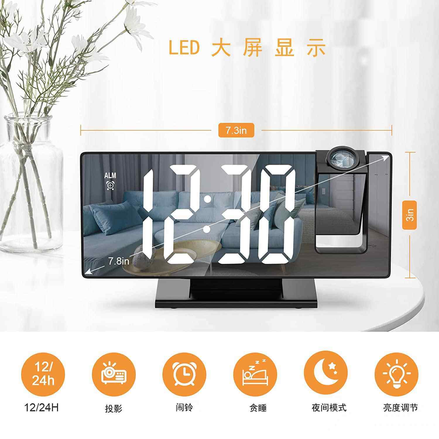 推荐理由:投影闹钟镜面大屏显示静音贪睡电子钟多功能智能数字夜光台钟时钟