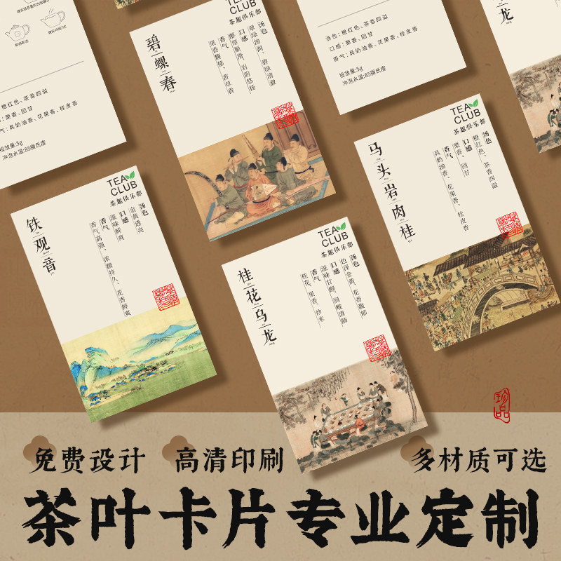 茶叶卡片定制产品介绍卡新中式宣传简介明信片卡纸设计茶馆礼盒贺