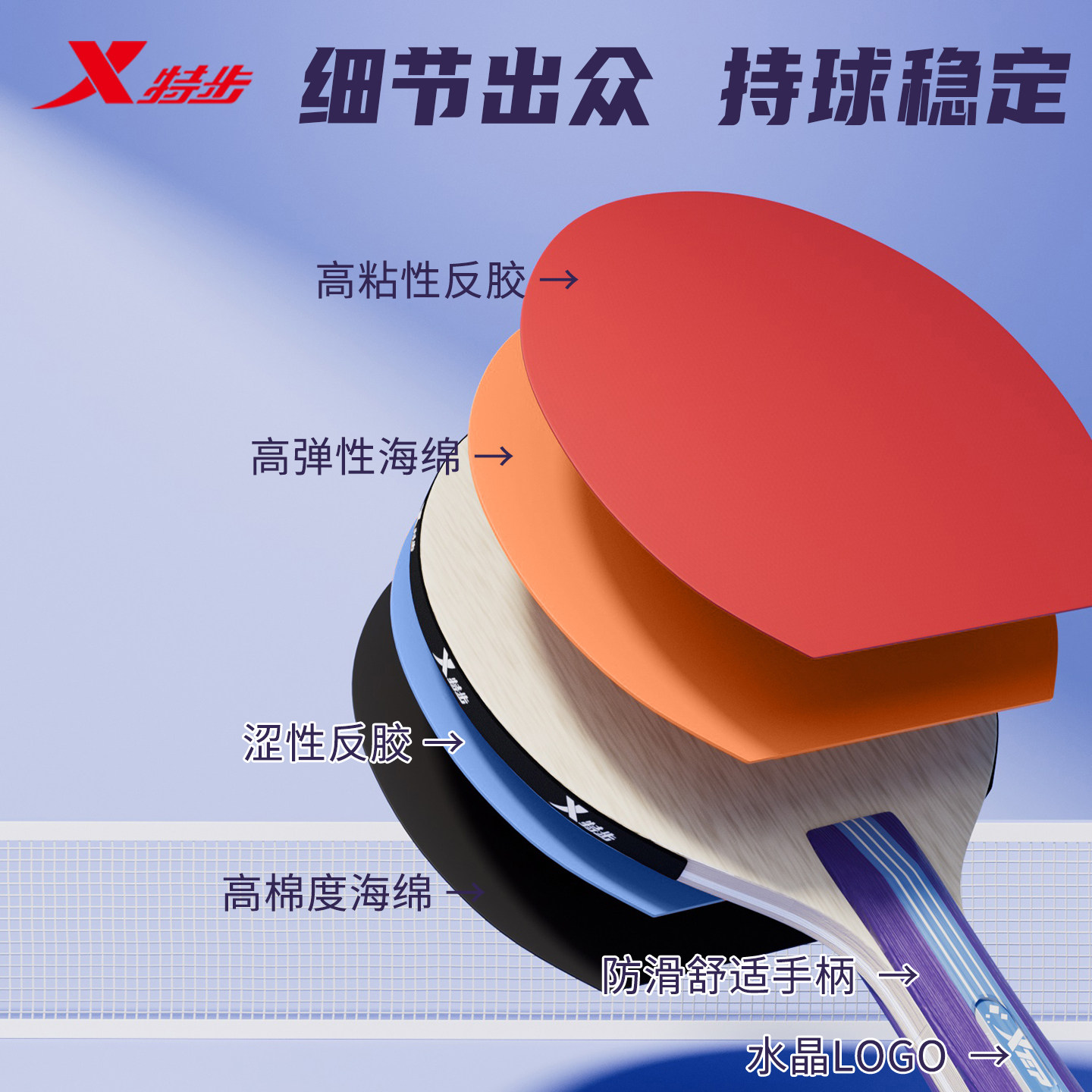 特步乒乓球拍初学者入门级双拍套装成人儿童学生训练比赛专用球拍