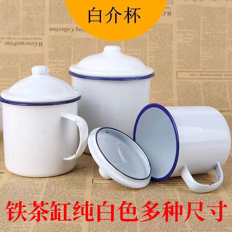 特价老式怀旧搪瓷茶缸马克杯纯白色搪瓷杯带盖医用化工纯色搪瓷
